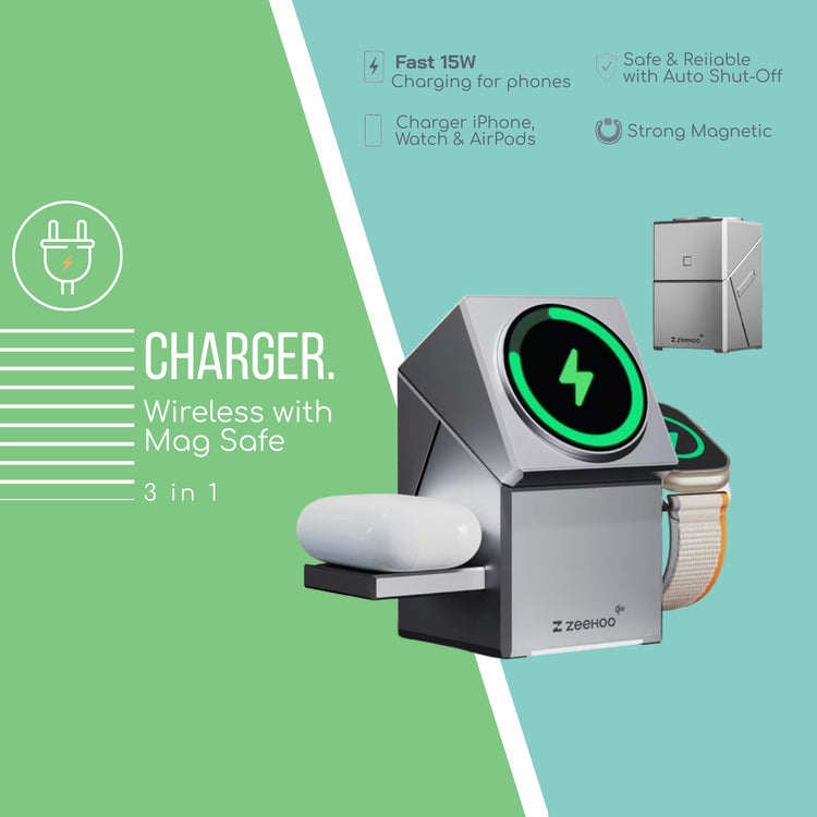 3-in-1 Magnetic Wireless Charging Station. This charger made my setup so much cleaner and more organized. I love how it powers my iPhone, Apple Watch, and AirPods in one place without messy cables everywhere. The magnetic alignment is strong and reliable, and the charging speed has been excellent so far. It looks modern on my desk and works exactly as advertised. Very impressed!